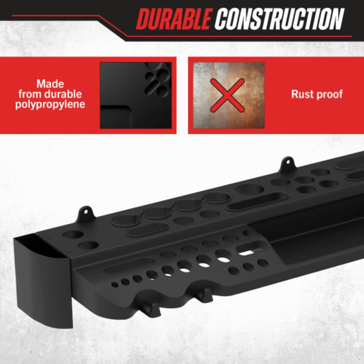 - MOUNTABLE - The storage bar is conveniently mountable on a wall or pegboard. Mounting your tool storage shelving unit helps to keep your most important tools organized and within reach when you need them.